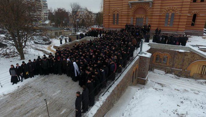 После собрания около 400 клириков Тульчинской, Могилев-Подольской и Винницкой епархий прошли к Свято-Воскресенскому храму и далее по ул. Соборной к зданию облгосадминистрации.