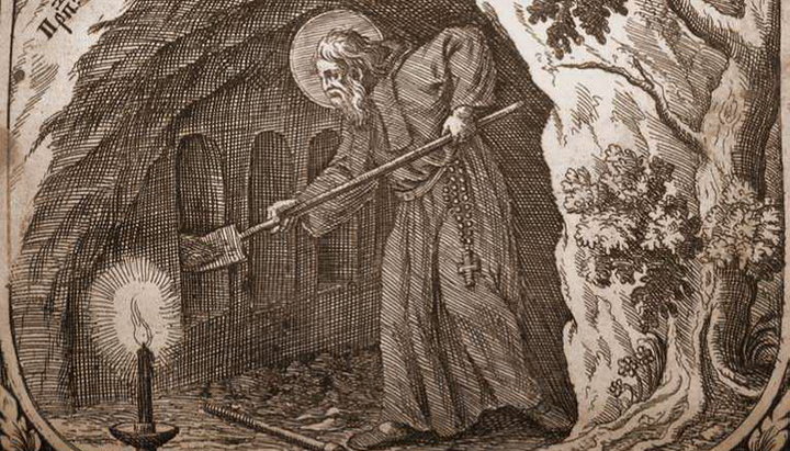 Преподобный Марк Гробокопатель. Гравюра из Киево-Печерского Патерика