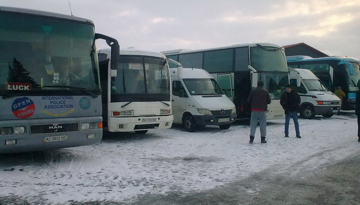 Общественная сеть «Опора», наблюдавшая за визитом президента на Волынь, выяснила, что людей свозили автобусами на молебен с Томосом.