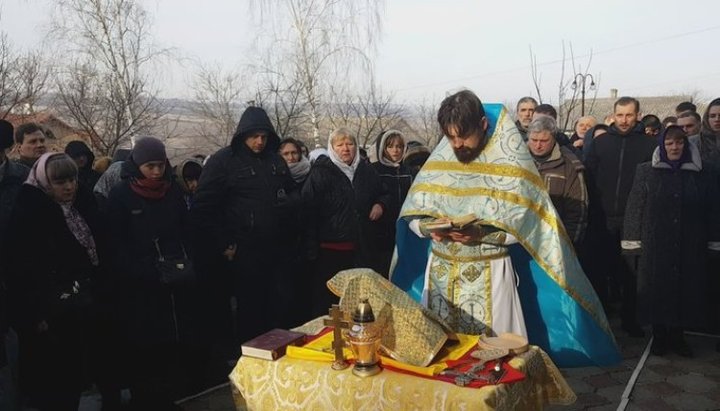 Верующие вынуждены были служить литургию на улице под стенами своего храма при 5 градусах мороза и на глазах у представителей полиции, которые заняли нейтральную позицию.