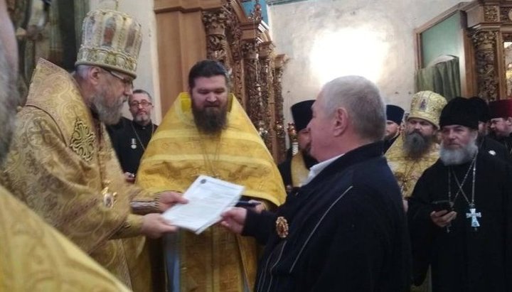 Глава Синодального военного отдела УПЦ митрополит Августин (Маркевич) награждает ветеранский актив