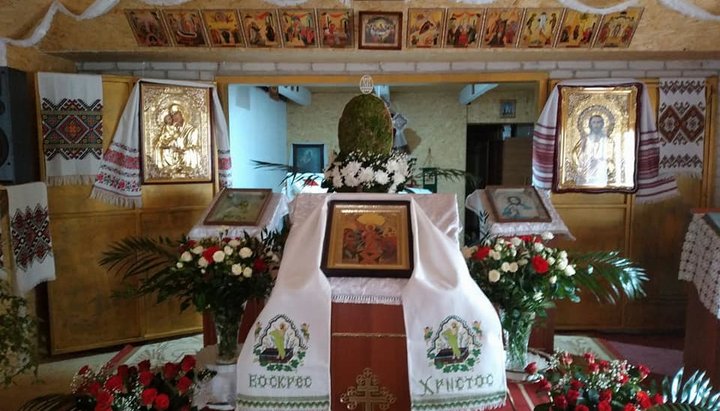 За тиждень до Великодня священик разом з вірянами створили перший храм «своїми руками». Чому кажу, що перший? Бо вірю у те, що їх чекає ще більш капітальне будівництво. Таким чином, Святу Пасху віруючі УПЦ села Жидичин зустрічали у майже типовій церковці, яка, судячи з фото також не вмістила всіх охочих, оскільки чимало людей стояло за межами приміщення.