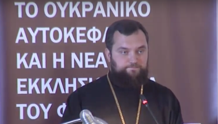 Протоиерей Олег Точинский во время выступления на конференции в Салониках. Фото: скриншот Youtube-канал Katanixi Site.