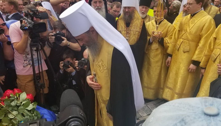 Предстоятель УПЦ Блаженнейший Митрополит Киевский и всея Украины Онуфрий совершает литию. Фото: УНИАН