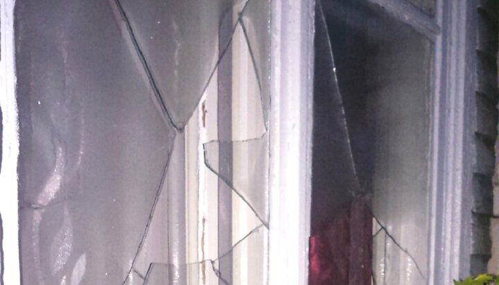 Разбитые окна церковного дома, в котором проживает священник УПЦ. Фото: Волынская епархия