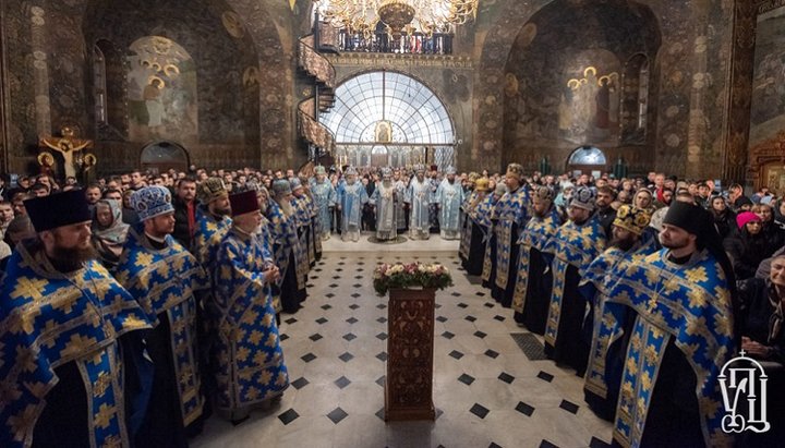 Архипастырю сослужили наместник Киево-Печерской обители митрополит Вышгородский и Чернобыльский Павел (Лебедь), управляющий делами УПЦ митрополит Бориспольский и Броварской Антоний (Паканич), викарий Киевской епархии архиепископ Бучанский Пантелеимон (Бащук), викарий Киевской митрополии епископ Белогородский Сильвестр (Стойчев) и духовенство монастыря.