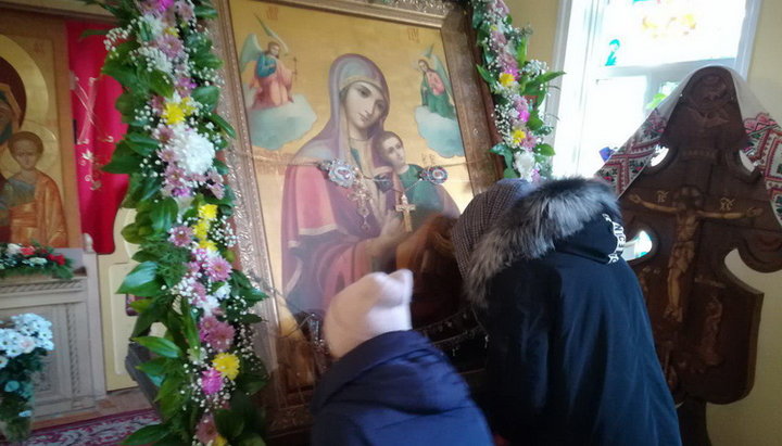 Прихожане храма, священнослужители, братия церкви и паломники с благоговением ожидали икону. Под перезвон церковных колоколов образ Божией Матери внесли в храм и установили на самом видном месте, а миряне тем временем послушали о чудотворном образе из уст матушки Татьяны.