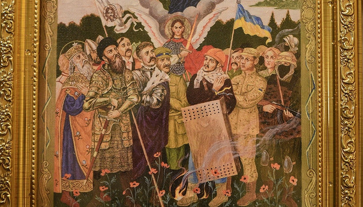 Первый заместитель председателя «Синодального управления военного духовенства» ПЦУ «протоиерей» Тарас Мельник рассказал, что было принято решение написать новую икону – с новыми героями (воинами УПА, АТО и майдановцами – Ред.).