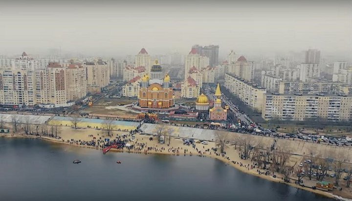 Видеозапись великого освящения вод Днепра с высоты птичьего полета, которое совершил Блаженнейший Митрополит Киевский и всея Украины Онуфрий 19 января 2020 года, в праздник Крещения Господня, опубликовал Центр информации УПЦ на своем официальном YouTube-канале.
