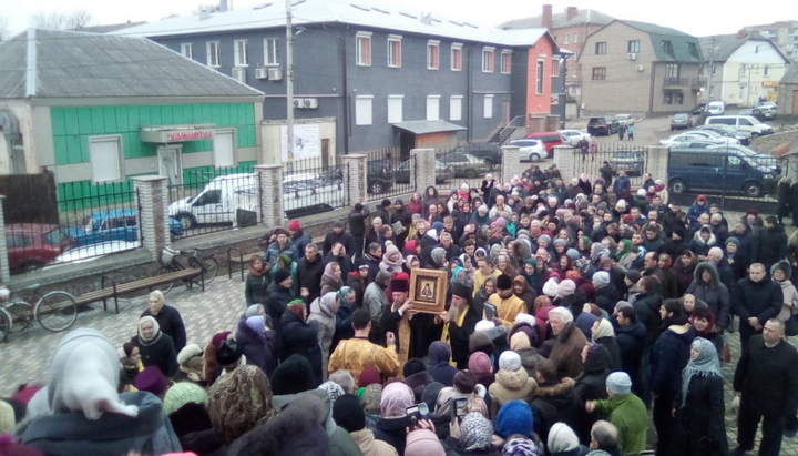 23 января в 16:00 возле Спасо-Преображенского собора города Овруч состоялась торжественная встреча святыни. После встречи в соборе был совершен молебен.
