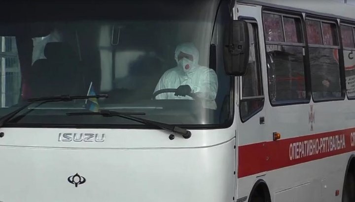 Автобус с эвакуированными из Китая. Фото: Униан