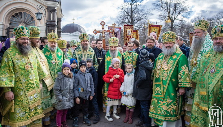 По окончании Литургии архипастыри, духовенство, прихожане и паломники во главе с Предстоятелем совершили крестный ход к Ближним пещерам Лавры, где по завершении молебна преподобным отцам Печерским все верующие были окроплены святой водой, а всему освященному собору провозглашено многолетие.