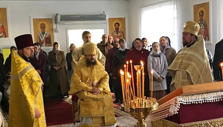 После освящения храма епископ Клеопа возглавил Божественную литургию, в сослужении настоятеля храма митрофорного протоиерея Романа Барбакара и духовенства епархии.