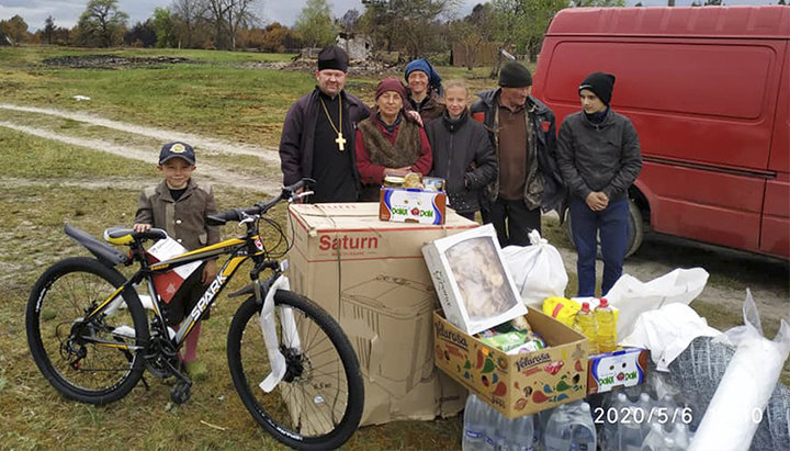 Протоиерей Павел Линник передал помощь от епархии пострадавшим от лесного пожара жителям села Остров. Фото: страница протоиерея Павла в Facebook