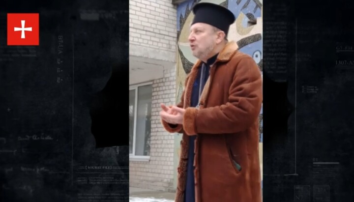 «Священник» ПЦУ на собрании теробщины в Семиполки. Фото: скриншот видео telegram-канала ДОЗОР на «Первом Казацьком»