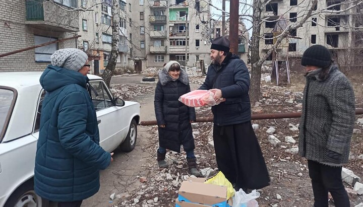 Клирики УПЦ под обстрелами раздали помощь жителям Северска и Часова Яра