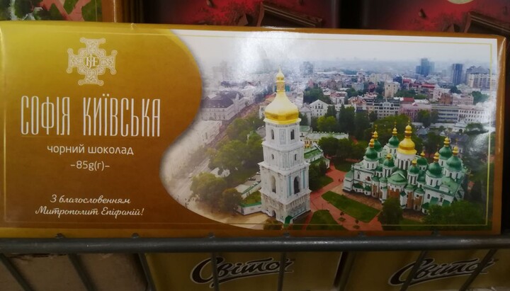 Крупнейшая в Украине сеть супермаркетов «Сильпо» начала торговать шоколадом «София Киевская» с изображением логотипа ПЦУ, фотографией собора и информацией о «благословении» продукции Епифанием Думенко.