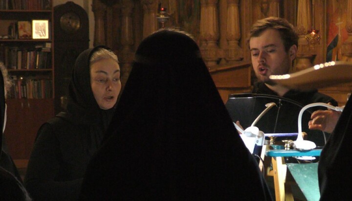 Марк Гогунский с мамой на клиросе в Прощеное воскресеньe. Фото: t.me/s/Zosima_Monastery