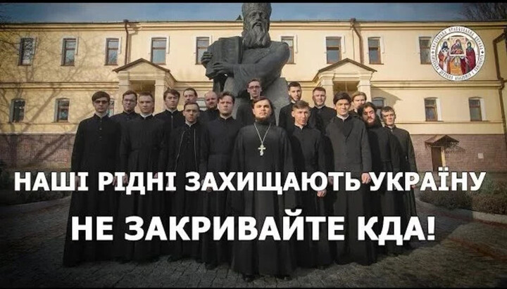 Студенты Киевской духовной академии и семинарии, родные и близкие которых сейчас находятся на передовой, обратились к Президенту Украины, Правительству Украины с просьбой не выгонять Киевские духовные школы из Киево-Печерской лавры и дать возможность учиться и молиться в обители. Видеосообщение студентов опубликовали на сайте КДАиС.