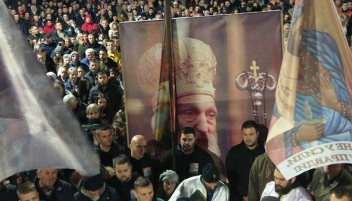 Крестный ход в защиту прав верующих Сербской Православной Церкви в Никшиче 5 марта 2020 года. Фото: in4s.net