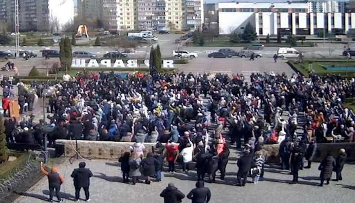 Городской голова Александр Мензул «вече» на майдане назвал «собранием религиозной общины прихода Спасо-Преображенского собора Сарненской епархии УПЦ относительно перехода в Православную церковь Украины».