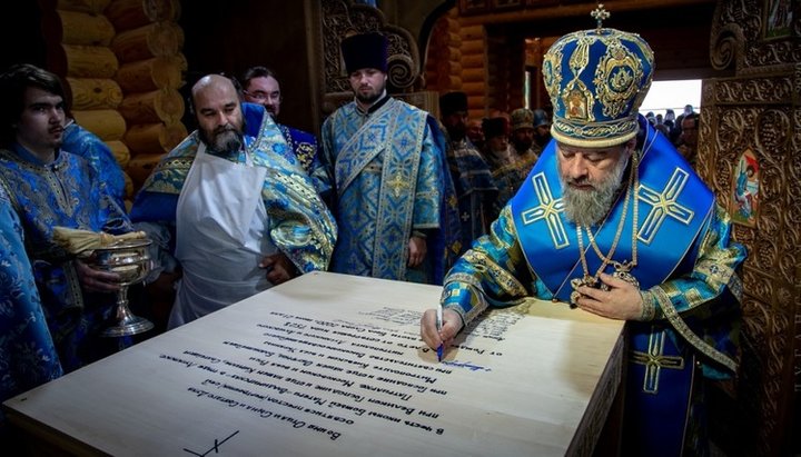 «Деревянный храм был возведен рядом с разрушенным богоборческой властью каменным храмом в честь Казанской иконы Божией Матери. Долгие годы верующие молились в приспособленном помещении – временном храме, посвященном в память о разрушенной святыне. Сегодня, по словам владыки, восстановилась историческая справедливость, и на святом месте в короткие сроки, трудами меценатов и добрых людей воздвигнут новый типовый храм», – отметили в епархиальной пресс-службе.