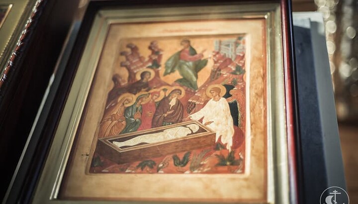 Вестник Божий сообщил женщинам о том, что Спаситель воскрес, после чего они поспешили в город, чтобы рассказать об этом апостолам.