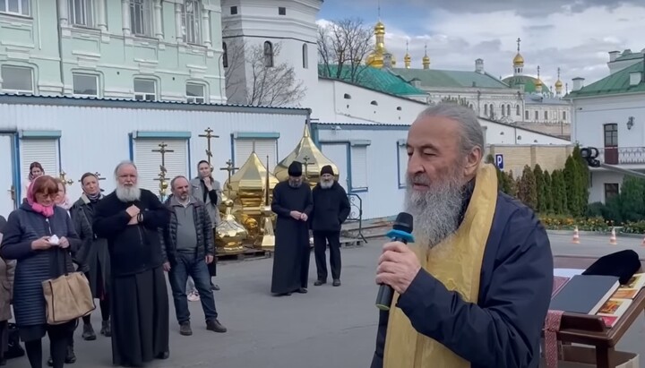 Предстоятель УПЦ на молитвенном стоянии в Киево-Печерской лавре. Фото: скриншот видео Информационно-просветительского отдела УПЦ
