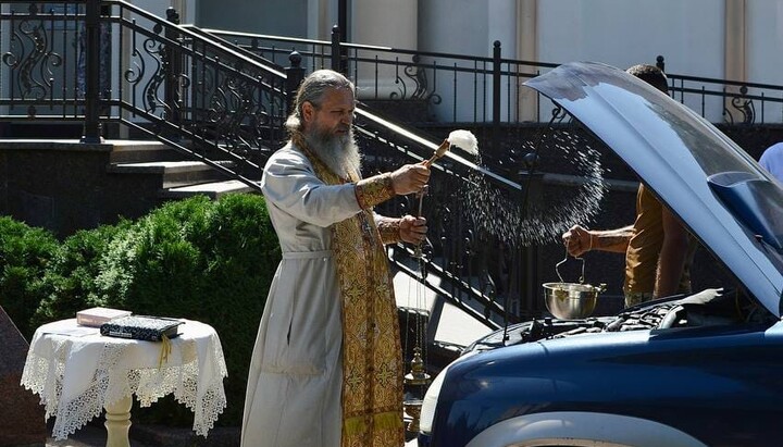 Протоиерей Евгений Назаренко освящает автомобиль для армии. Фото: orthodox-kr.org.ua