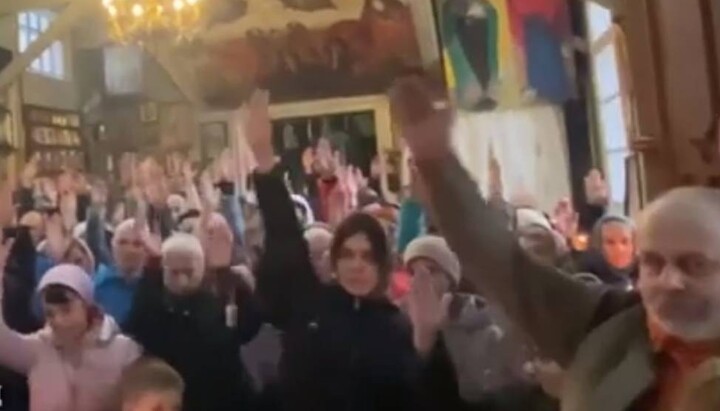Ирпенская Троицкая община УПЦ единодушна в своей решимости оставаться в канонической Церкви. Фото: скриншот видео Telegram-канала «Дозор на "Першому Козацькому"»