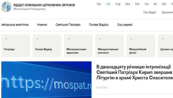 Отдел внешних церковных связей РПЦ 1 февраля 2021 года запустил свой новый информационно-аналитический портал с возможностью переключения на 10 разных языков, в том числе и на украинский. Как сообщает ОВЦС на своем сайте, здесь будет публиковаться информация о внешней деятельности Русской Православной Церкви.