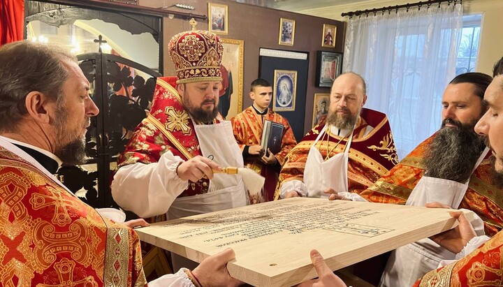 Архиепископ Спиридон освящает престол храма св. мученицы Александры Римской. Фото: Telegram-канал «Покровське вікаріатство»