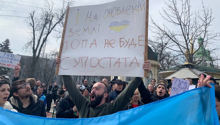 Активист перед Киево-печерской лаврой. Фото: СПЖ