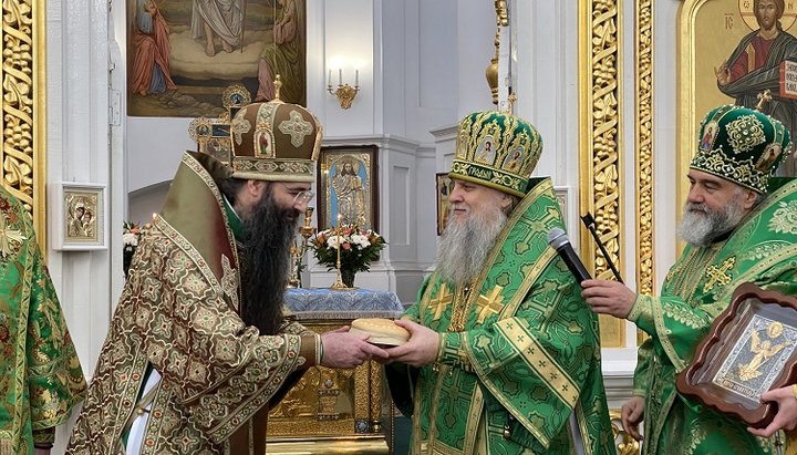 «За литургией были вознесены особые молитвы ныне тезоименитого митрополита Варсонофия. После завершения Богослужения состоялось прославление праздника Сретения и прп. Варсонофия Великого. От имени всех присутствующих митрополита Варсонофия поздравил митрополит Ионафан».