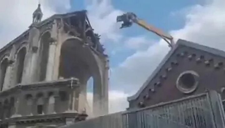 Во французском Лилле продолжается снос часовни Святого Иосифа, экскаваторы постепенно разрушают здание, сообщает в твиттере издание Lille Actu.