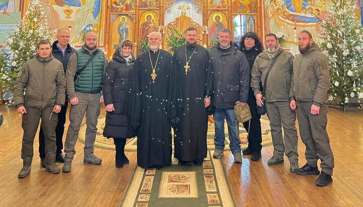 Клирики Успенского храма в Александровке Одесской области и военные. Фото: facebook.com/PetroKanarian