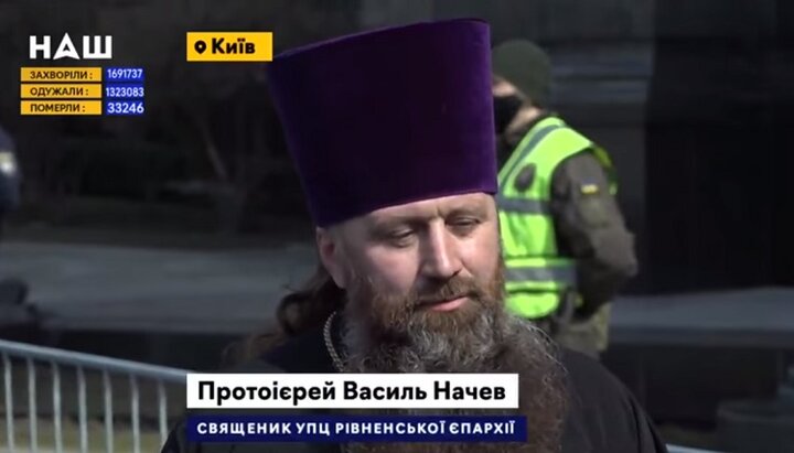 Глава Юридического отдела Ровенской епархии УПЦ протоиерей Василий Начев. Фото: скриншот видео со страницы Центра информации УПЦ в Facebok.