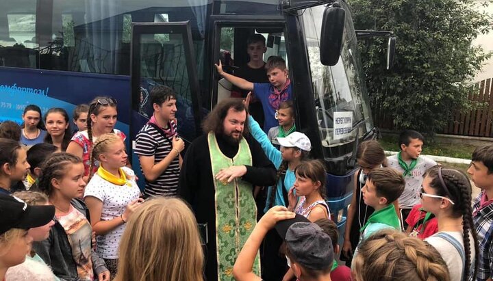 О. Виктор Земляной с юными прихожанами УПЦ. Фото: Facebook-страница