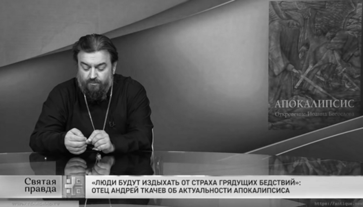 Протоиерей Андрей Ткачев выступает с «проповедью» на церковном канале РПЦ. Фото: скриншот видео канала Царьград
