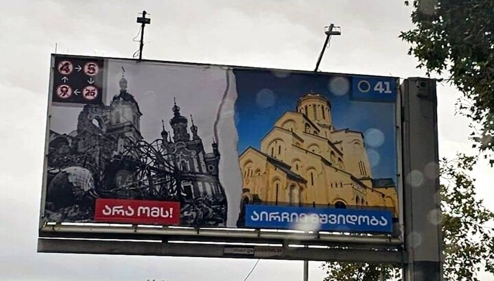 В Грузии партия использует на баннерах фото разрушенных храмов УПЦ