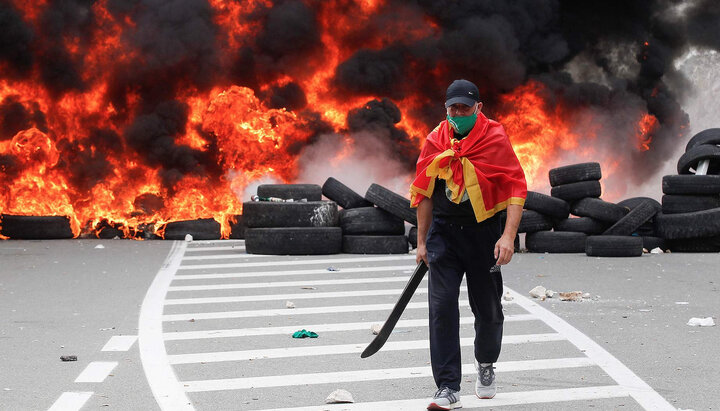 Один из участников беспорядков в Цетинье. Фото: iz.ru
