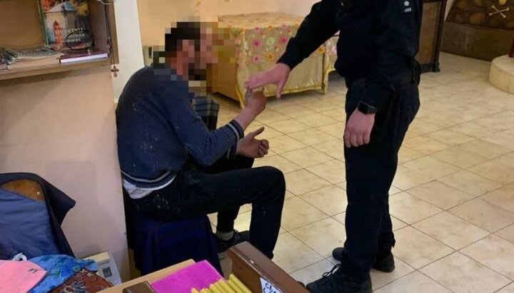 Мужчина, проникший в одесский храм с целью наживы. Фото: https://t.me/od_patrolpolice