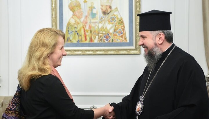 Глава Госэтнополитики Елена Богдан и глава ПЦУ Епифаний. Фото: facebook.com/dess.gov.ua