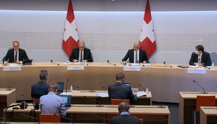 Пресс-конференция по поводу референдума 28 ноября 2021 года по закону COVID-19. Фото: скриншот видео YouTube-канала Der Schweizerische Bundesrat