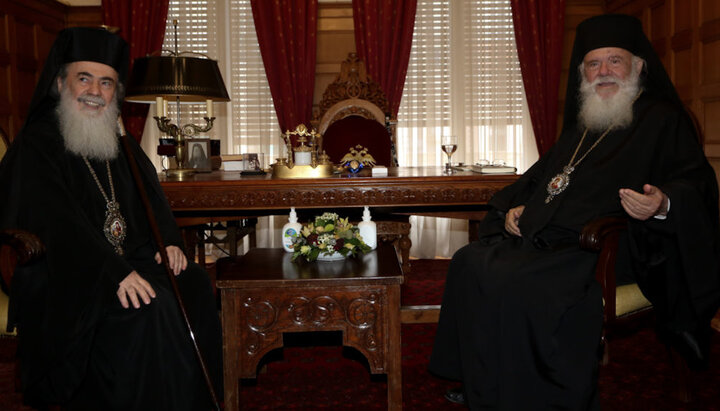 Глава Элладской Церкви встретился с Патриархом Иерусалимским Феофилом