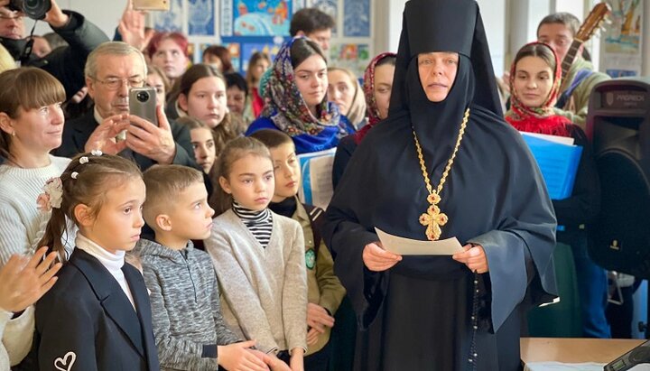 Игуменья Серафима (Шевчик) с финалистами конкурса в Одессе. Фото: facebook-страница Серафима Шевчик