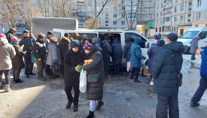 Духовенство и волонтеры УПЦ помогли продуктами жителям Харькова