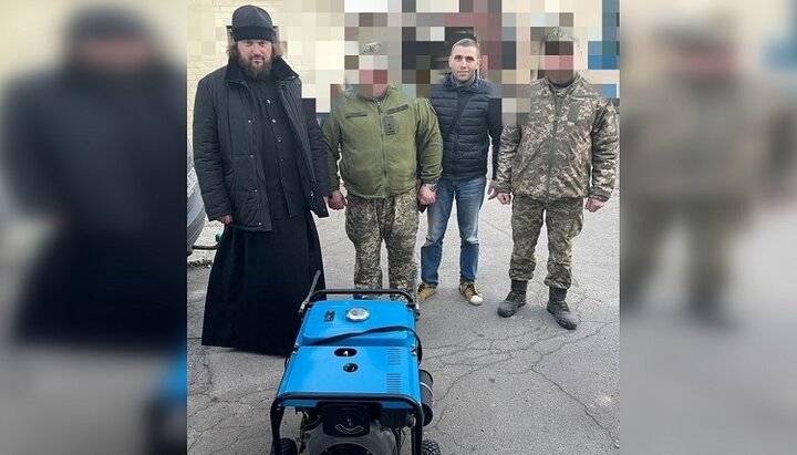 Клирик Ровенской епархии УПЦ передает дизель-генератор военнослужащим. Фото: