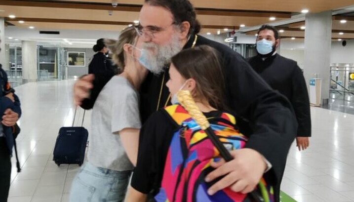 Митрополит Исаия встретил украинских беженцев в аэропорту. Фото: orthodoxianewsagency.gr