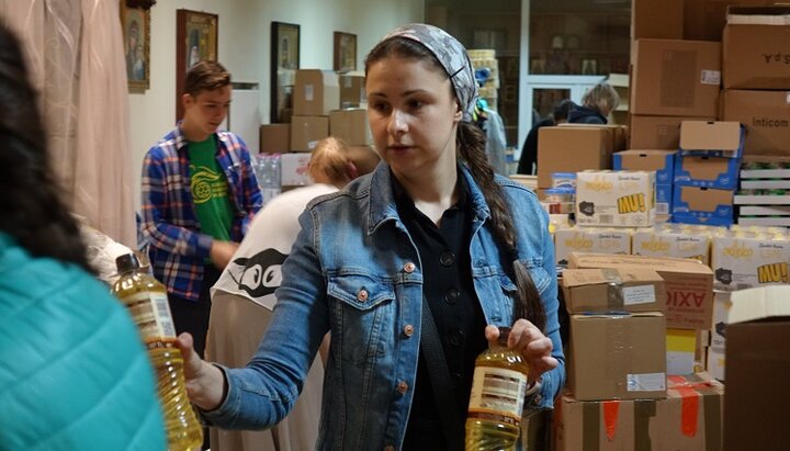 В раздаче помощи нуждающимся беженцам священникам УПЦ помогали волонтеры. Фото: facebook-страница Полтавська єпархія УПЦ